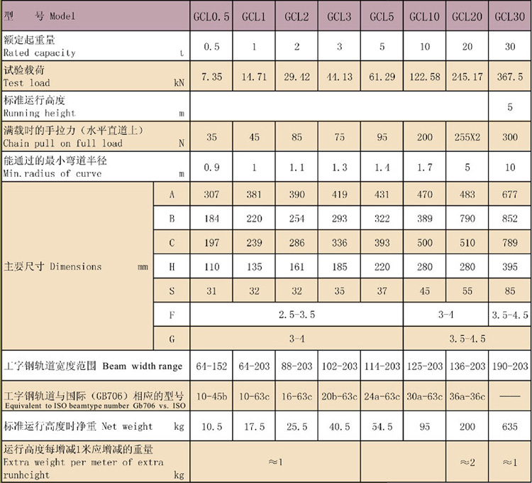 GCL型手鏈單軌小車
