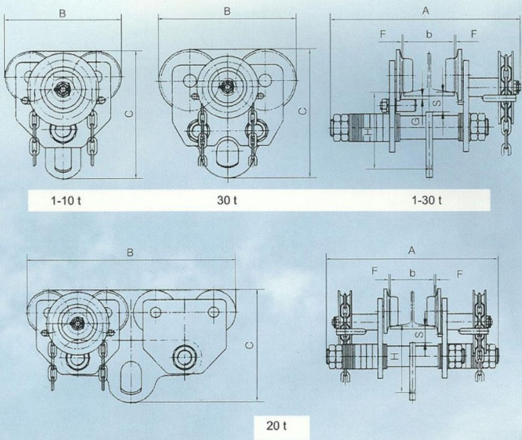 手鏈單軌小車又叫手拉葫蘆跑車,手拉跑車分為兩大類:1普通型手拉跑車,2防撞型手拉跑車。行走承載能力0.5T-30T,其作用于工字鋼上左右行走。主要適用于:手拉葫蘆、環鏈電動葫蘆的吊點配合可組成起重運輸方面的四位要求。廣泛用于無電源的工作環境、汽車發動機的安裝就位和貨物的搬運。